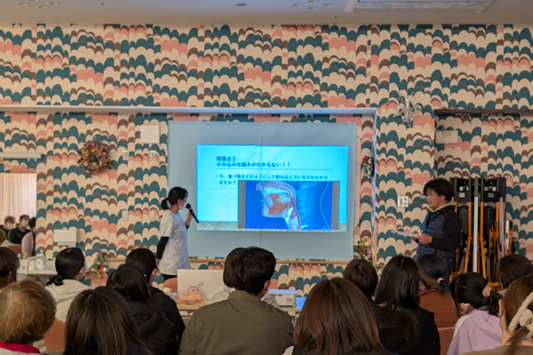 協力医療機関 岩浅歯科医院の岩浅侑子先生による、口腔ケアスキルアップ講座を行いました。口腔ケアの課題を見つけ、解決方法を考える。